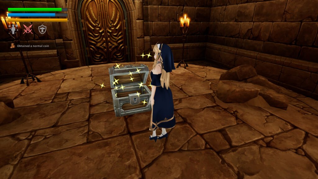 A TPS action game about a nun fighting demons, featuring “bladder accident” (omorashi) scenes. Clear stages using charged shots and dodges. Use coins to buy enchants and custom colors for outfits. Reaching Game Over leads to humiliation scenes by evil spirits.